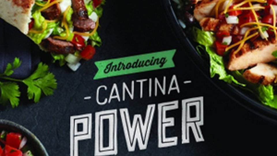 The Cantina Power Menu’s burritos and bowls include a double portion of chicken or steak, as well as lettuce, Pico de Gallo, guacamole, cheddar cheese and reduced-fat sour cream. The burrito is grilled in a flour tortilla, and the bowl is served on a bed of black beans and Latin rice.
